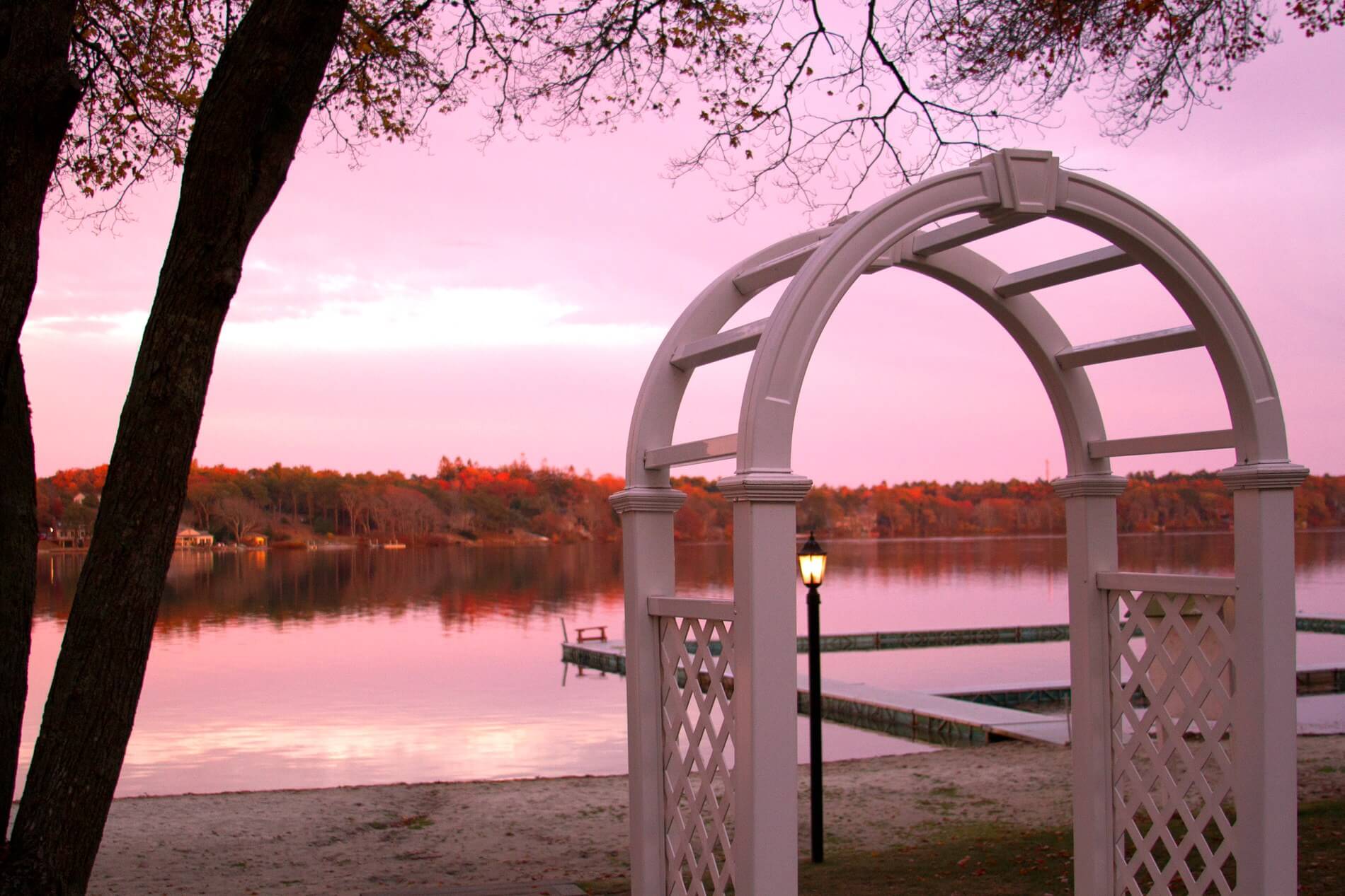 Situated on a private Plymouth retreat bordered by a deep, freshwater lake, our 10-acre wedding facility is unparalleled. Your guests will love a boat tour. At our wedding facility, guests not only experience the quiet and serenity of nearby Cape Cod firsthand, they can enjoy fun-filled activities on our waterfront including a post-reception campfire at our fire pit! All of your guests can then spend the night at our facility and enjoy a full breakfast the following morning.